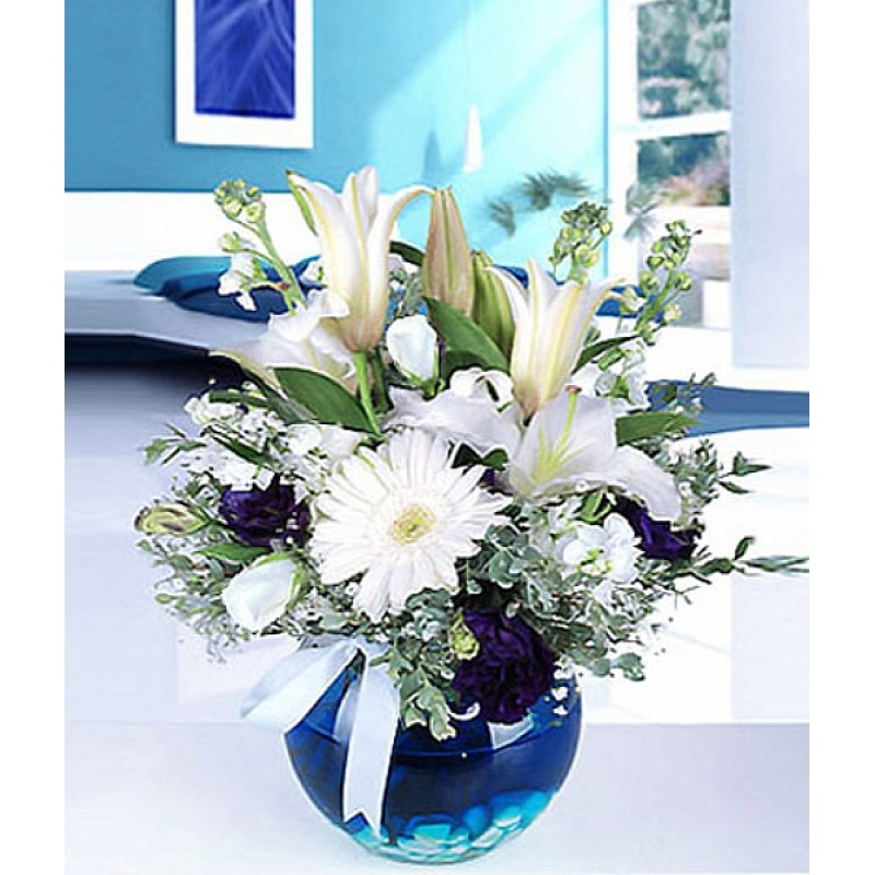 Vazoda 12 Beyaz Gül Lilyum Aranjman